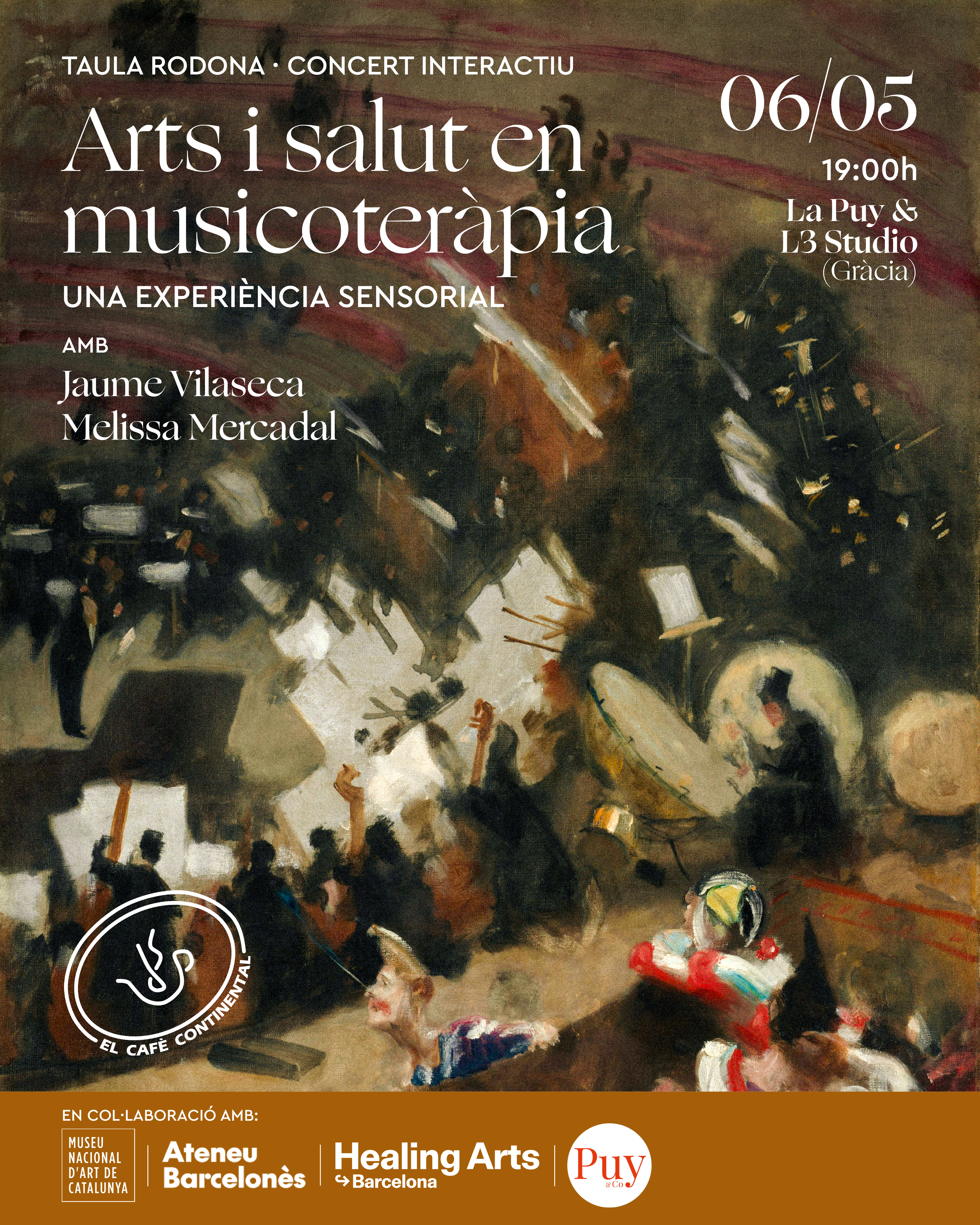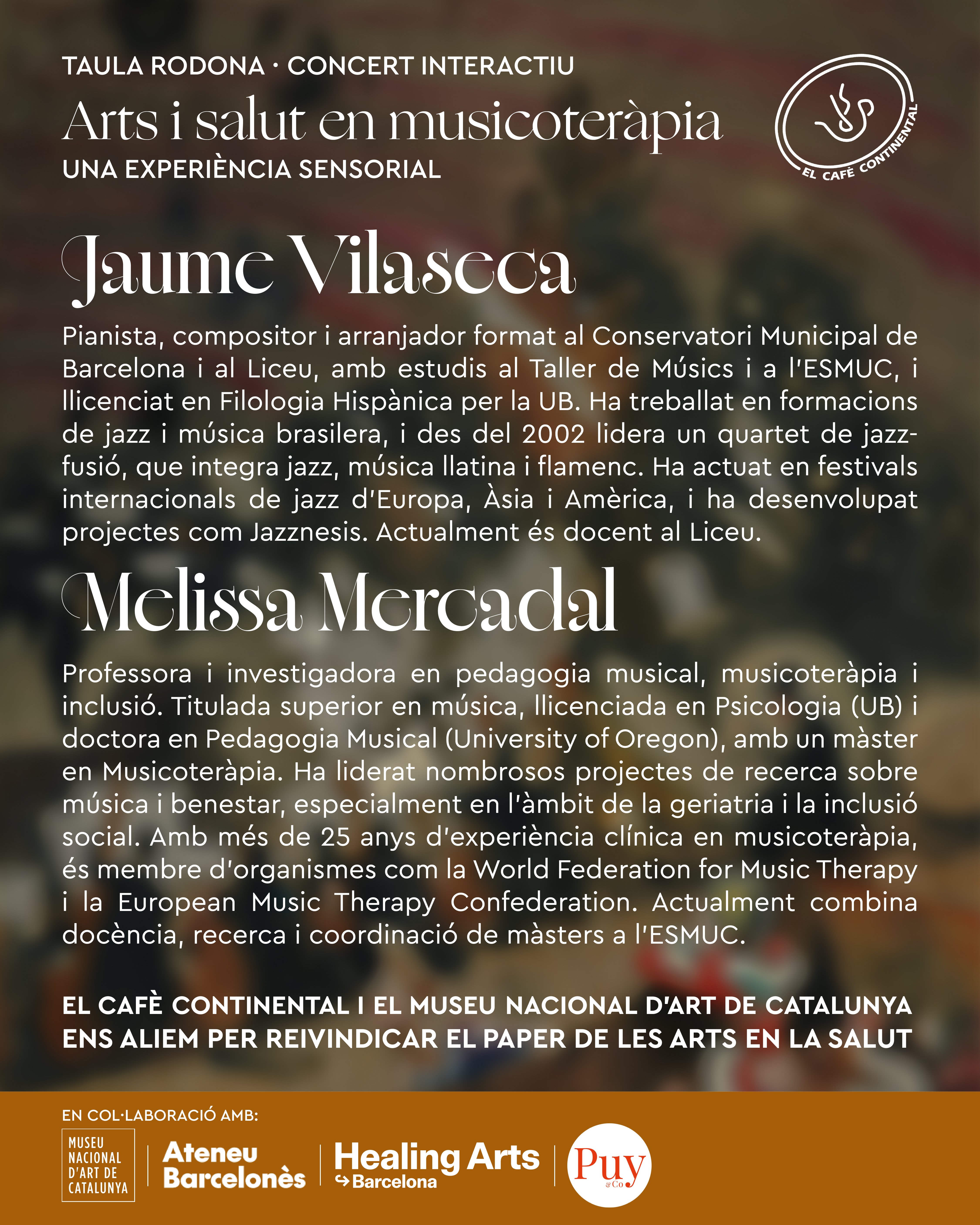 Concert interactiu liderat per Jaume Vilaseca, seguit d’una taula rodona en què també participarà Melissa Mercadal, per conèixer de primera mà la pràctica de la musicoteràpia i els seus beneficis.
