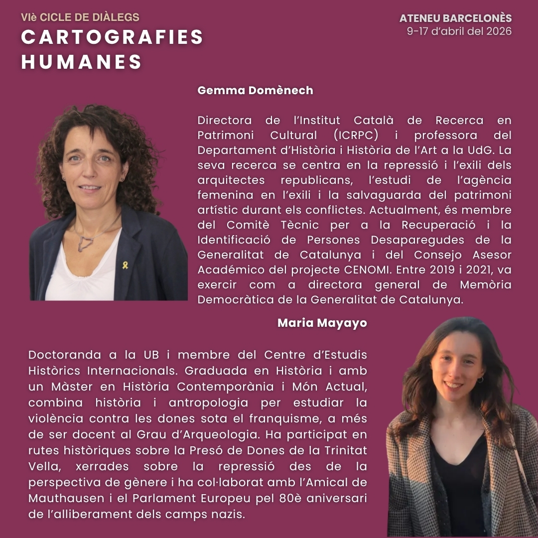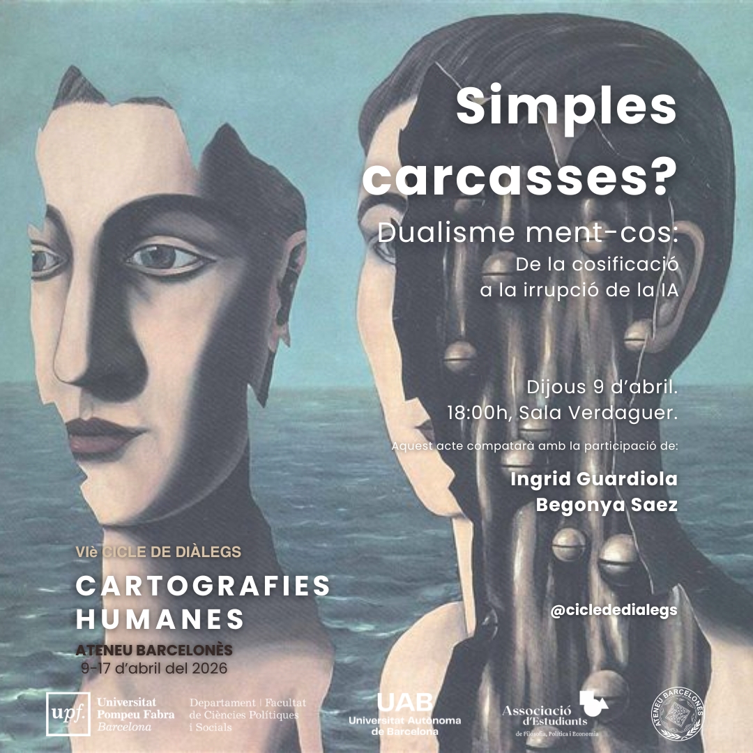| Taula 1: 9 d’abril – Simples carcasses? Dualisme ment-cos: de la cosificació a la irrupció de la IA. Ponents: Begoña Sàez i Ingrid Guardiola.