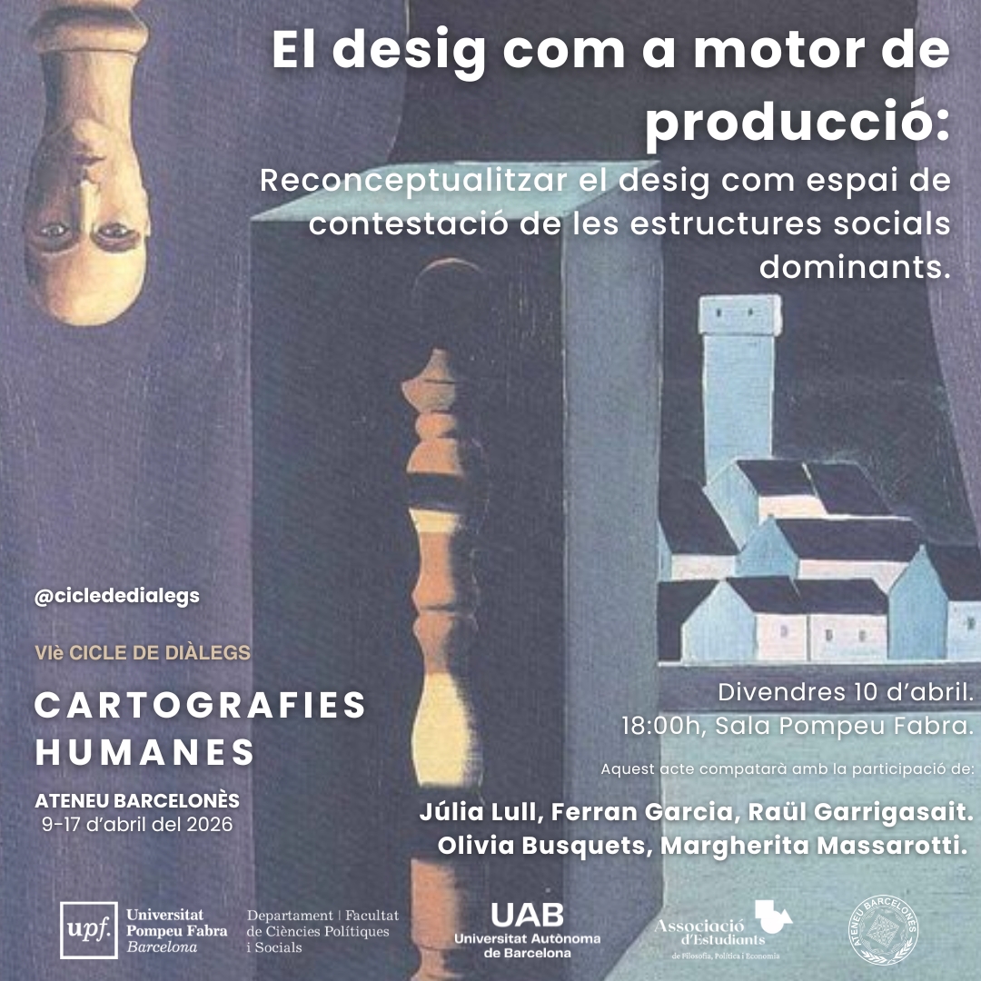 Taula 2. 10 d’abril – El desig com a motor de producció: Reconceptualitzar el desig com espai de contestació de les estructures socials dominants. Ponents: Jùlia Lull, Ferran García i Raül Garrigasait.