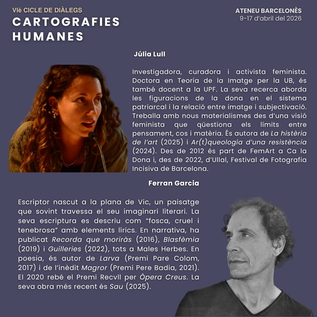 El VIè Cicle de Diàlegs “Cartografies humanes” proposa pensar el cos com un territori viu, un espai de traçat i de conflicte, on s’inscriuen relacions de poder, memòries històriques, violències estructurals, transformacions tecnològiques i, alhora, possibilitats de desig, fuga i resistència. Les fronteres no apareixen aquí com a línies abstractes, sinó com a cicatrius dibuixades sobre la pell. Lluny d’una concepció del cos com a objecte passiu o mera matèria, el cicle aposta per una lectura situada i política del cos: un cos que produeix sentit, que s’escapa de les taxonomies fixes i que desorienta els aparells de classificació de l’acadèmia convencional. En aquest relleu accidentat, els cossos subalterns, dissidents o no normatius revelen la fragilitat dels criteris de demarcació dominants. El cicle convida així a desplaçar la mirada: de la fredor de la taula de disseccions a l’escalfor de la pell pròpia; de la línia recta al traç sinuós; de la representació del cos com a objecte a l’experiència del cos com a procés viu. No es tracta de reconciliar dues instàncies separades, sinó d’assumir que cos, pensament i desig emergeixen sempre en relació, en un mateix pla d’immanència. |